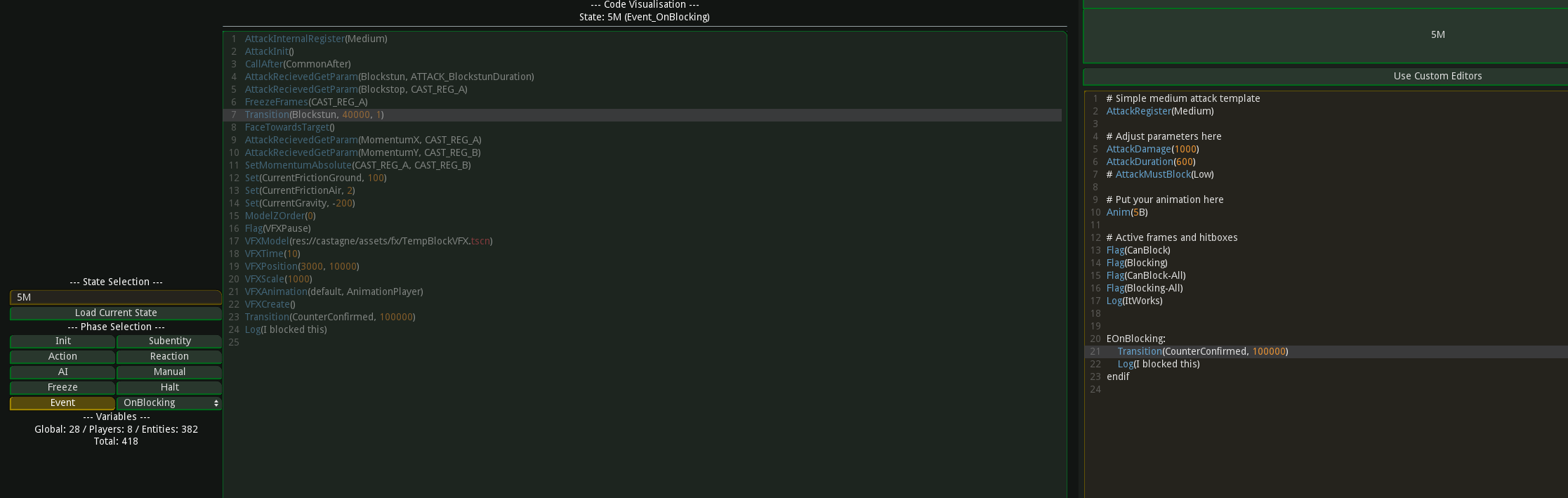 I’m working on creating a counter move for a character, as advised in the old website tutorial I made it into two states (and then had to update the code to current engine standard). First state blocks and if there’s an attack it actually blocks it will transition into the next state. Second state does the attack.